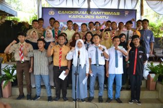 Kapolres Harviadi, Mantan Kasubdit Reg Ident Polda Jatim saat didampingi Kapolsek Pujon AKP. Budi dan Kasubag Humas Polres Batu Ipda Yudistiro mengatakan,” Sengaja kami dari Polres Batu menginisiasi Cangkru’an Kamtibmas bersama Dinas Pendidikan, Kepala Sekolah, Ketua Osis dan Pelajar untuk bersama sama mendukung tugas Kepolisian dan memelihara kamtibmas agar Batu yang sudah kondusif semakin terpelihara kondusifitasnya.