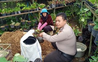 Binmas Polsek Batu Polres Batu Jumat (18/10/2019) pukul.15.06 Wib, Bhabinkamtibmas Desa Sidomulyo Polsek Batu Brigadir Aris Chandra sambang Ibu Mistin Tani Bunga Warga Jl Cemara Kipas RW.02 Desa Sidomulyo Batu.