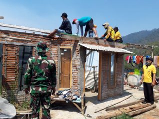 ” Ditempat huni warga yang didera musibah,denga kondisi jerusakan rumahnya yang porak poranda.Dibagian gentingnya, maupun tembok rumahnya yang hancur,