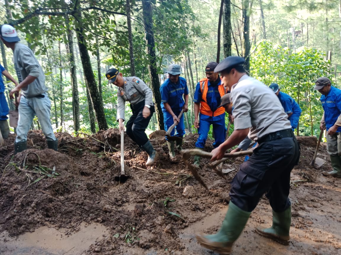 Polres Batu Cyber News – Sinergitas TNI – Polri, BPBD, Dinas Kesehatan, PMI, Karang Taruna dan masyarakat bahu membahu bersihkan tanah longsor yang menutup hampir setengah badan jalan di Jalan Dusun Bakir Desa Sukomulyo dan Dusun Cukal Kecamatan Pujon Kabupaten Malang. (14/2/20). Musim penghujan yang terus mengguyur di wilayah hukum Polres Batu dan sekitarnya berpotensi menimbulkan bencana alam, mengingat karakteristik alamnya adalah pegunungan, bencana alam seperti tanah longsor, pohon tumbang bahkan angin kencang masih menjadi kekhawatiran bagi masyarakat Kota Batu dan sekitarnya. Longsor yang terjadi pada ruas jalan Dusun Bakir Desa Sukomulyo dan Dusun Cukal Kecamatan Pujon Kabupaten Malang mengakibatkan…