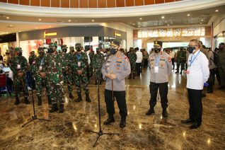 JAKARTA – Panglima TNI Marsekal Hadi Tjahjanto dan Kapolri Jenderal Listyo Sigit Prabowo meninjau langsung serbuan vaksin di wilayah Kalimantan Barat yang digelar di dua tempat yaitu di Ayani Mega Mall dan SMAN 1 Pontianak, Rabu (8/9/2021).