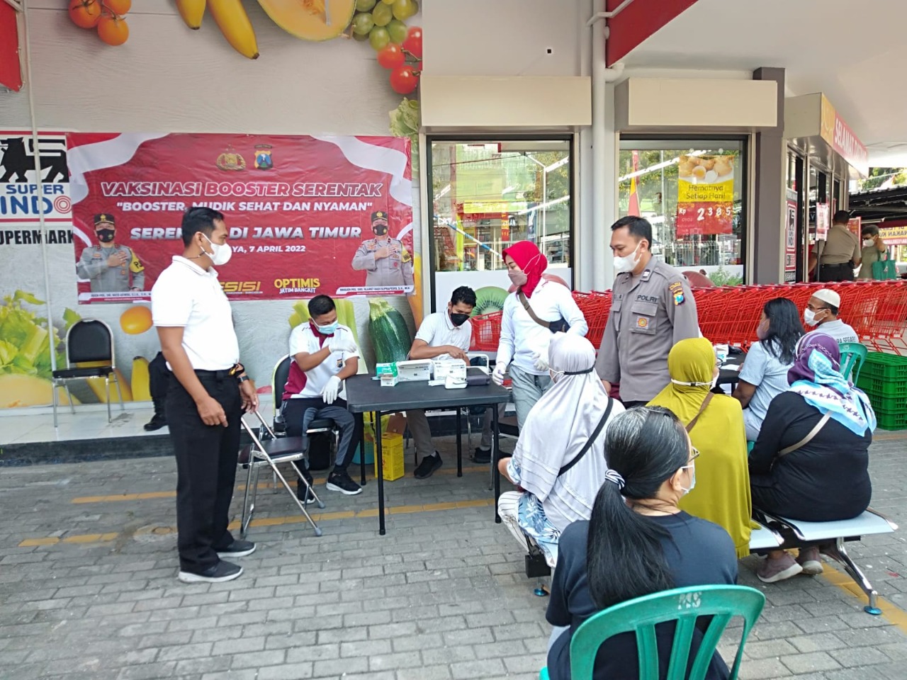BOJONEGORO – Percepatan vaksinasi terus dilakukan Polres Bojonegoro dengan cara membuka gerai vaksinasi di pusat perbelanjaan atau pasar modern di Kabupaten Bojonegoro. Kapolres Bojonegoro, AKBP Muhammad, SH, SIK, M.Si menjelaskan pihaknya memilih lokasi tersebut karena dinilai strategis dan mudah dijangkau masyarakat yang ingin mendapatkan vaksin booster Covid-19. “Selain menyelenggarakan vaksinasi booster,kami juga melayani vaksinasi dosis pertama maupun dosis kedua bagi anak-anak hingga lansia,”jelas Kapolres Bojonegoro. Ia mengatakan, kegiatan tersebut dilakukan untuk mendukung program pemerintah dalam percepatan vaksinasi guna meningkatkan kekebalan tubuh warga, untuk mengantisipasi penularan Covid-19. “Vaksin booster merupakan upaya untuk meningkatkan imun dalam menghadapi penyebaran Covid-19 atau virus varian…