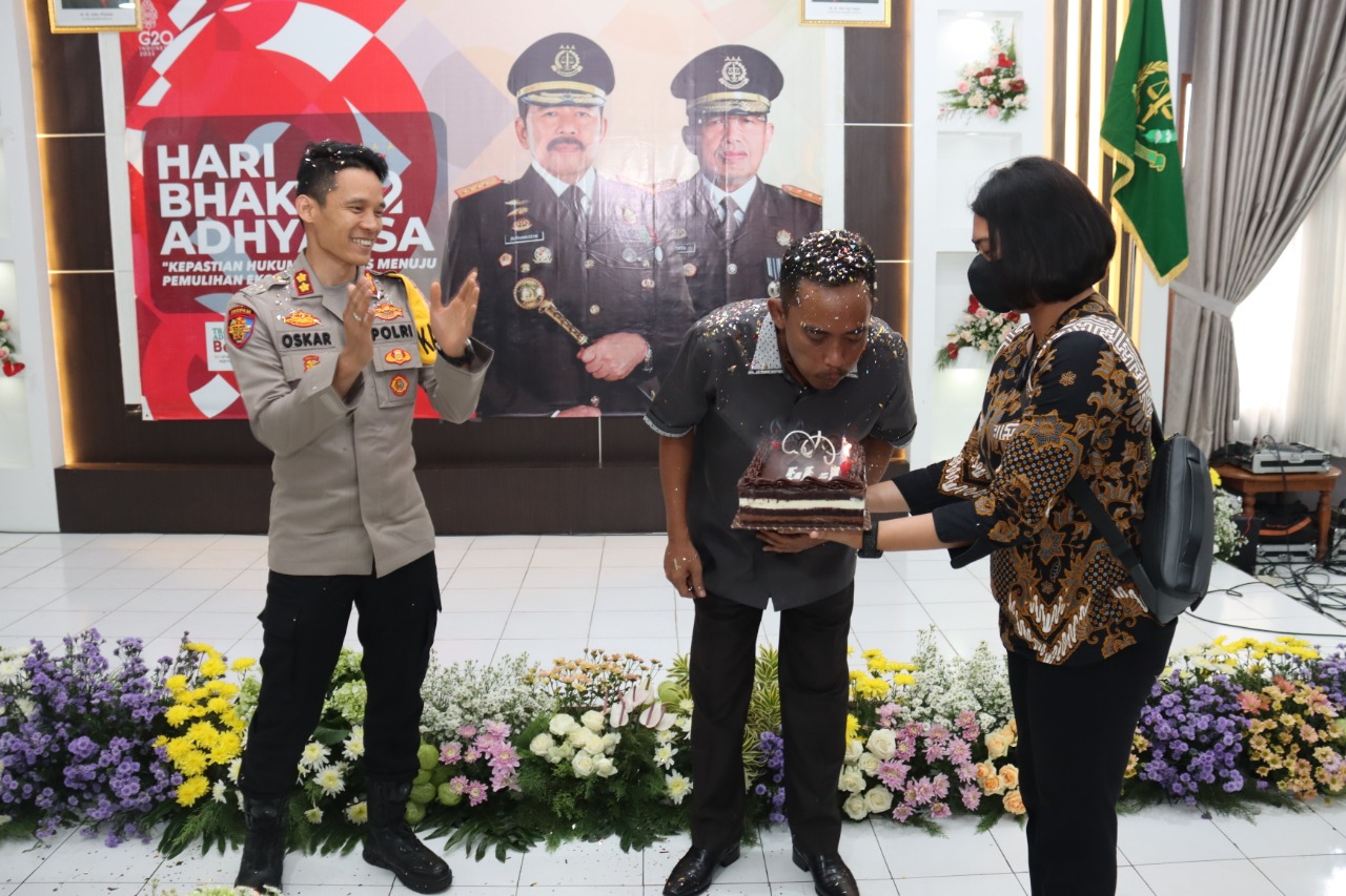 Peringati Hari Bhakti Adhyaksa ke-62, Kapolres Batu Beri Kejutan Keluarga Besar Kejari Batu