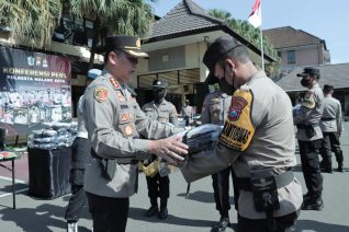 Pada kegiatan itu pula Kapolresta Malang Kota Kombes Pol. Budi Hermanto S.I.K., M.Si. membagikan peralatan tanggap bencana kepada seluruh Bhabinkamtibmas pada 57 Kelurahan Se-Kota Malang.