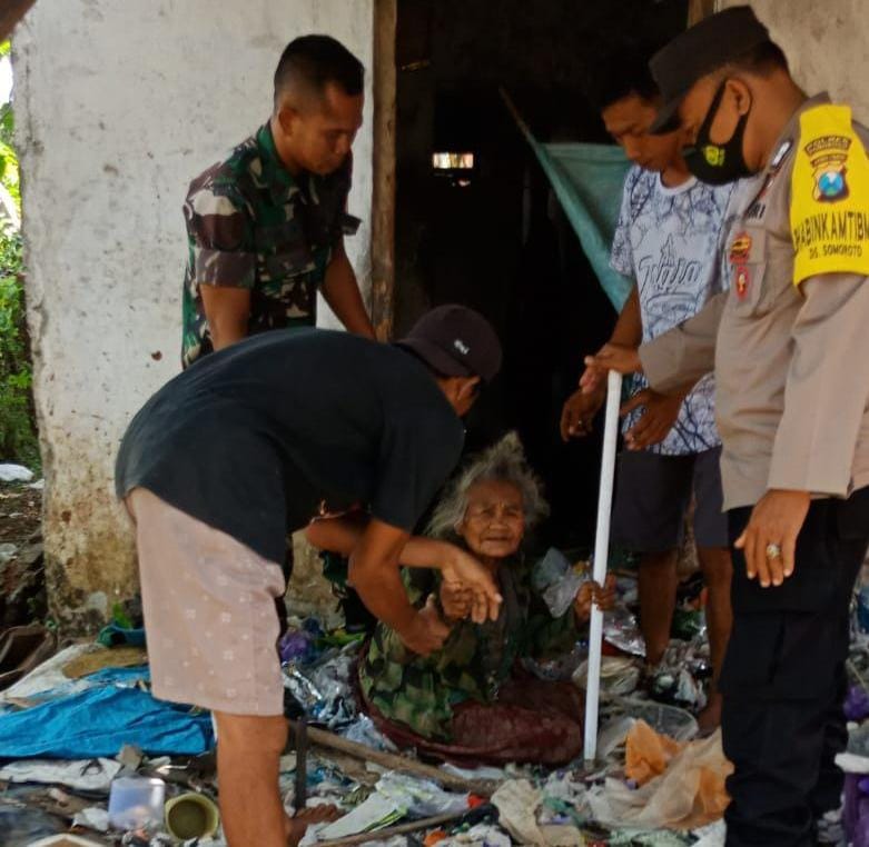 Kompak, Polisi di Ponorogo bersama TNI dan Warga Bedah Rumah Mbah Ponirah yang Hidup Sebatangkara