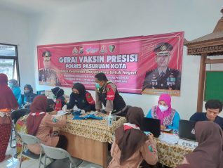 Kota Pasuruan – Upaya percepatan vaksinasi Covid-19 dilakukan oleh jajaran Polres Pasuruan Kota,Polda Jatim. Salah satunya dengan menggelar vaksinasi melalui Gerai Vaksin Presisi yang bertempat di Klinik FKTP di Jalan Gajah Mada no.19 Kota Pasuruan, Selasa (17/1/2023).