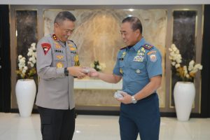 SURABAYA – Kapolda Jawa Timur Irjen Pol Drs.Imam Sugianto,M.Si dan Waka Polda Jawa Timur Brigjen Pol Akhmad Yusep Gunawan didampingi Pejabat Utama (PJU) Polda Jatim menerima Courtesy Call Panglima Komando Armada (Pangkoarmada) ll di Selasar Gedung Patuh Mapolda Jatim, Selasa (2/1/24).
