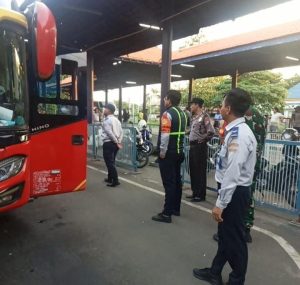 Personel Polisi bersama stake holder terkait melakukan pemeriksaan dan patroli dialogis kepada kru bus maupun penumpang di keberangkatan bus tujuan Bali.