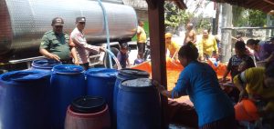 Menanggapi keluhan tersebut, Polres Bojonegoro melalui Bripka Indro selaku Bhabinkamtibmas dari Polsek Ngasem bersama Serka Subendi dari Koramil Ngasem turun langsung mendistribusikan air bersih kepada warga Desa Kolong.