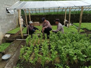 Dalam kunjungannya Aiptu Mundir berdialog langsung dengan Bapak Suhadi mengenai proses penanaman bibit, perawatan tanaman, serta kendala-kendala yang dihadapi selama masa tanam.
