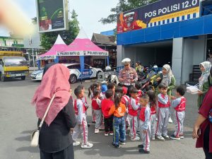 Ipda Gema menyampaikan bahwa edukasi lalu lintas sejak usia dini sangat penting untuk membentuk karakter tertib berlalu lintas sejak kecil.