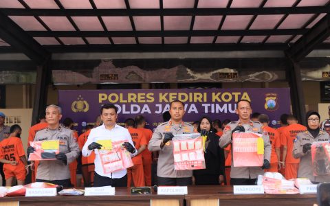 KOTA KEDIRI – Satresnarkoba Polres Kediri Kota Polda Jatim berhasil mengungkap 19 kasus penyalahgunaan dan peredaran narkoba dengan total 23 tersangka dalam periode April-Mei 2025. Pengungkapan kasus tersebut dari 8 kecamatan wilayah hukum Polres Kediri Kota, yakni Empat tempat kejadian perkara (TKP) di wilayah Kecamatan Mojoroto, Pesantren, Kediri Kota, 2 TKP di wilayah Kecamatan Semen dan 1 TKP di Kecamatan Mojo. Hal tersebut disampaikan Kapolres Kediri Kota AKBP Bramastyo Priaji dalam konferensi pers di Mapolres Kediri Kota, Selasa (3/6/2025). AKBP Bramastyo mengatakan, hasil pengungkapan kasus narkoba bulan April-Mei 2025 yang dilaksanakan Satresnarkoba dan Polsek jajaran sebanyak 19 kasus terdiri dari…