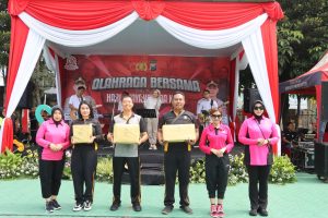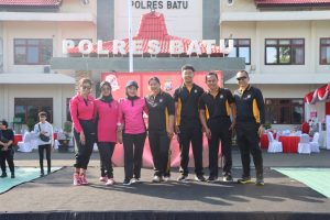 Kota Batu – Polres Batu menggelar olahraga bersama seluruh anggota dan bhayangkari di lapangan apel Polres Batu, dalam rangka menyambut Hari Bhayangkara Ke-79 Tahun 2025. Rabu (11/6/25).