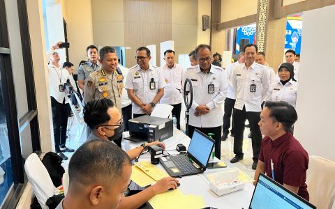 SURABAYA – Turut memperingati Hari Bhayangkara ke – 79, Kantor Wilayah Direktorat Jenderal (Ditjen) Imigrasi Jawa Timur membuka layanan pembuatan paspor baru di Gedung Mahameru, Polda Jawa Timur. Kepala Kantor Wilayah Ditjen Keimigrasian Jawa Timur Novianto Sulastono mengatakan, layanan masyarakat ini hasil kolaborasi dan sinergi antara Polda Jatim dan Imigrasi Jawa Timur ini mulai dilaksanakan selama Dua hari mulai Senin (23/6) hingga Selasa (24/6). Pelayanan paspor dalam rangka menyambut Hari Bhayangkara ke-79 tersebut bertajuk “Semarak Pelayanan 1079 Paspor untuk Negeri”. Pelayanan dibuka sejak pukul 08.00 hingga pukul 16.00 waktu setempat. Kepala Kantor Wilayah Ditjen Keimigrasian Jawa Timur Novianto Sulastono menjelaskan Total kuota…