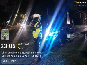Batu.- Dalam upaya menciptakan situasi keamanan, keselamatan, ketertiban, dan kelancaran lalu lintas (Kamseltibcarlantas) serta mencegah potensi gangguan kamtibmas, anggota Satuan Lalu Lintas (Satlantas) Polres Batu melaksanakan kegiatan Patroli Blue Light pada malam hingga dini hari. Kegiatan ini difokuskan untuk mengantisipasi aksi balap liar, kecelakaan lalu lintas, serta potensi tindak kriminalitas di wilayah hukum Polres Batu.