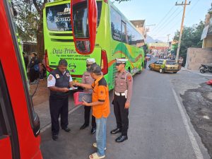 Kanit Kamsel Satlantas Polres Batu dan anggota bersama dengan Dishub Kota Batu dan Jasa Raharja melaksanakan kegiatan pemeriksaan (ramcek) bus pariwisata yang akan digunakan oleh Majelis Ta’lim Jama’ah Ngopi Dusun Sekar Putih Pendem untuk berwisata religi (ziarah wali 5 Jawa Timur) pada Sabtu (5/7/2025).