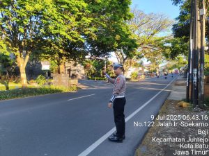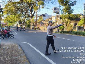 Anggota Satuan Lalu Lintas (Satlantas) Polres Batu terus menunjukkan komitmennya dalam memberikan pelayanan terbaik kepada masyarakat melalui kegiatan pengaturan arus lalu lintas di berbagai titik rawan kepadatan di wilayah hukum Polres Batu. Kegiatan ini dilaksanakan sebagai bentuk upaya preventif guna mencegah kemacetan serta meminimalisir potensi terjadinya kecelakaan lalu lintas.