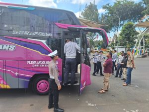 Batu – Guna menjamin keselamatan dan kenyamanan pengguna angkutan umum, Satuan Lalu Lintas (Satlantas) Polres Batu melaksanakan kegiatan pemeriksaan mendadak (ramcek) terhadap bus dan angkutan umum di Terminal Kota Batu pada Kamis (10/7/2025) .