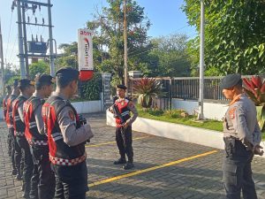 Kegiatan apel pagi dilaksanakan di halaman Bank Jatim Cabang Kota Batu, yang dipimpin oleh personel Sat Samapta sebagai bentuk kesiapan pengamanan dan pengecekan kekuatan personel sebelum pelaksanaan tugas.