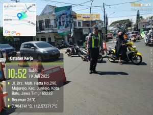 Salah satu kegiatan yang menjadi perhatian adalah pengamanan kegiatan Drumband Siswa Poltekad serta pengaturan arus lalu lintas di dua titik strategis wilayah Kecamatan Junrejo, Kota Batu, Sabtu (19/07/2025).