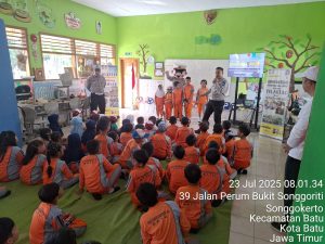 Salah satu kegiatan tersebut diwujudkan dalam bentuk Pembinaan dan Penyuluhan (Binluh) tentang Tertib Berlalu Lintas kepada siswa-siswi Sekolah Dasar Negeri (SDN) Songgokerto 3 yang berlokasi di Kelurahan Songgokerto, Kecamatan Batu, Kota Batu, Rabu (23/07/2025).