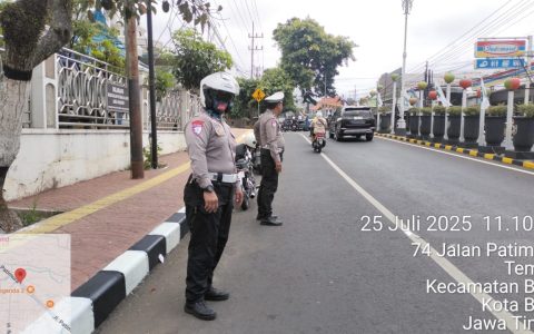 Kota Batu – Dalam rangka mendukung kelancaran kegiatan masyarakat sekaligus menjalankan amanat Operasi Patuh Semeru 2025, personel Satuan Lalu Lintas (Satlantas) Polres Batu melaksanakan kegiatan pengamanan dan membantu penyeberangan jamaah ibadah Sholat Jum’at di Masjid Darussolihin, Jalan Patimura, Kelurahan Temas, Kecamatan Batu, Kota Batu, Jum’at (25/07/2025). Kegiatan ini bertujuan untuk menciptakan situasi lalu lintas yang aman dan kondusif, khususnya di sekitar area masjid yang pada waktu Sholat Jum’at mengalami peningkatan volume kendaraan serta mobilitas masyarakat. Personel Satlantas ditempatkan di beberapa titik rawan kepadatan dan persimpangan sekitar masjid guna mengatur arus lalu lintas serta membantu para jamaah menyeberang jalan dengan aman….