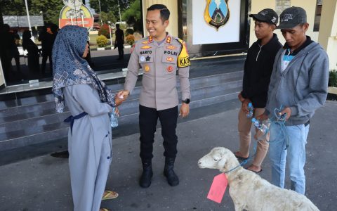BONDOWOSO – Sebagai bentuk kepedulian terhadap masyarakat dan wujud nyata kehadiran Polri di tengah masyarakat, Kapolres Bondowoso AKBP Harto Agung Cahyono, S.H., S.I.K., M.H. menyerahkan seekor kambing jantan jenis gibas berwarna putih kepada korban pencurian hewan ternak. Penyerahan ini merupakan tindak lanjut dari keberhasilan Polsek Wonosari Polres Bondowoso dalam mengungkap kasus pencurian hewan (Curwan) yang terjadi pada Selasa, 22 Juli 2025 sekitar pukul 10.00 WIB di wilayah Desa Lombok Wetan, Kecamatan Wonosari, Kabupaten Bondowoso. Kapolres Bondowoso AKBP Harto Agung Cahyono mengatakan saat itu, pelaku diketahui melepaskan ikatan tali kambing milik warga yang terpasang pada sebatang pasak di areal persawahan dengan…
