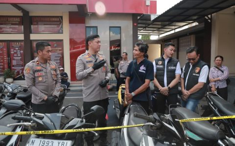 JEMBER – Polres Jember Polda Jawa Timur bersama jajaran Polsek berhasil membongkar jaringan pelaku yang beroperasi lintas kecamatan. Dalam pengungkapan ini, Polisi menyita 23 unit motor curian dari tangan Tiga tersangka. Tiga orang tersangka juga berhasil diamankan, masing-masing berinisial YU (48) asal Semboro, MG (35) asal Tanggul, dan KAC (51) asal Sumberbaru. Ketiganya diketahui punya rekam jejak panjang sebagai residivis kasus curanmor. Kapolres Jember AKBP Bobby A. Condroputra, mengatakan para tersangka punya peran berbeda dalam jaringan. “Ada yang jadi eksekutor lapangan, ada juga yang berperan sebagai penadah motor hasil curian,” ujar AKBP Bobby, Rabu (1/10/2025). Modus operandi para pelaku adalah…
