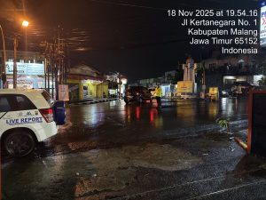 Kota Batu – Rutinitas lalu lintas di kawasan Simpang 3 Karangploso, Jalan Raya Diponegoro, Kecamatan Karangploso, Kabupaten Malang, sempat mengalami gangguan, Selasa (18/11/2025) malam.