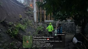 Batu, Malang – Semangat gotong royong dan respons cepat ditunjukkan oleh jajaran keamanan dan pemerintah setempat dalam menangani insyarat ambrolnya sebuah plengsengan (dinding penahan tanah) di Jalan Raya Kambal, RT 025/RW 006, Desa Mulyorejo, Kecamatan Ngantang, Kabupaten Malang, Jum’at (21/11/2025).