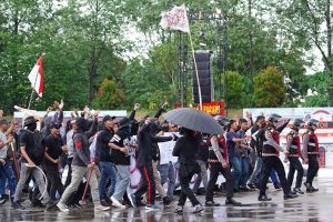 3. Tidak Tertib – Massa mulai melempar, melakukan pembakaran lokal, atau gangguan yang menyebabkan luka ringan. Petugas melakukan kendali tangan kosong keras dan pendorongan dengan meriam air (AWC).