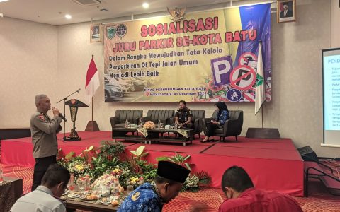 Kota Batu, Senin, 01 Desember 2025 – Guna mewujudkan tata kelola perparkiran di tepi jalan umum yang lebih baik, tertib, dan berstandar, Pemerintah Kota Batu melalui Dinas Perhubungan menggelar Sosialisasi Juru Parkir se-Kota Batu. Kegiatan yang mengambil tema “Mewujudkan Tata Kelola Perparkiran Di Tepi Jalan Umum Menjadi Lebih Baik” ini diselenggarakan di Jati Hall Hotel Samara, Jalan Imam Bonjol No. 17B, Kota Batu, dan dihadiri langsung oleh Walikota dan Wakil Walikota Batu. Acara yang berlangsung khidmat ini juga menghadirkan Kasi Hukum Polres Batu, Iptu Supriadi, S.H., sebagai salah satu narasumber, menunjukkan komitmen Polri dalam mendukung penertiban dan pembinaan terhadap sektor…