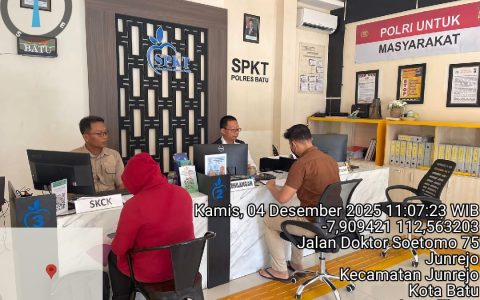 Kota Batu, Kamis, 4 Desember 2025 – Sebagai garda terdepan pelayanan publik, personel Sentra Pelayanan Kepolisian Terpadu (SPKT) Polres Batu terus menunjukkan komitmennya dalam memberikan pelayanan prima kepada masyarakat. Kali ini, fokus pelayanan diarahkan pada penerbitan dua dokumen penting, yaitu Surat Keterangan Catatan Kepolisian (SKCK) dan Surat Keterangan Tanda Lapor Kehilangan (SKTLK), yang diberikan dengan pendekatan humanis di Ruang SPKT Polres Batu. Pelayanan ini tidak hanya menitikberatkan pada akurasi dan kecepatan administratif, tetapi lebih jauh menciptakan atmosfer kenyamanan dan empati bagi setiap warga yang datang mengurus kepentingan mereka. Hal ini merupakan implementasi nyata dari visi Polri sebagai pelindung, pengayom, dan…