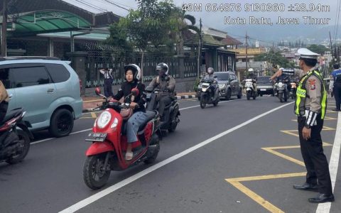 Kota Batu, Kamis, 4 Desember 2025 – Personel Satuan Lalu Lintas (Satlantas) Polres Batu terus meningkatkan pelayanan prima kepada masyarakat dengan melaksanakan kegiatan pengaturan lalu lintas di sejumlah titik rawan dan ramai pengguna jalan di wilayah Kota Batu. Kegiatan ini dilakukan sebagai upaya memastikan arus kendaraan tetap lancar, aman, dan tertib, terutama pada jam-jam sibuk saat mobilitas masyarakat meningkat. Sejak pagi hari, personel Satlantas telah menempati beberapa persimpangan utama, pusat keramaian, kawasan wisata, serta akses menuju fasilitas publik. Dalam pelaksanaan tugasnya, petugas tidak hanya melakukan penjagaan di titik-titik strategis, tetapi juga aktif membantu penyeberang jalan, termasuk pelajar, wisatawan, dan warga…