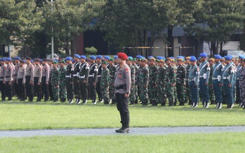 SURABAYA – Kapolda Jawa Timur (Jatim), Irjen Pol Drs. Nanang Avianto, M.Si pimpin Apel Satgas Premanisme 2025 yang dihadiri oleh jajaran Forkopimda Jatim, para Pejabat Utama Polda Jatim dan Instansi terkait serta personel Polda Jatim di Lapangan Mapolda Jatim, Rabu (10/12). Dalam amanatnya, Irjen Pol Nanang Avianto menyampaikan hasil evaluasi Kamtibmas periode akhir Oktober hingga awal November 2025 menunjukkan tren peningkatan kejahatan sebesar 7,66%. Yang paling mengkhawatirkan adalah melonjaknya penyalahgunaan senjata tajam dan senjata api hingga 175%. Merespons hal tersebut, Polda Jawa Timur membentuk Satgas Permanisme dengan melibatkan instansi di wilayah Jawa Timur. “Ini komitmen kita dalam merawat Jogo Jatim….