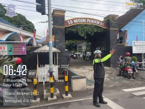 Personel Satuan Lalu Lintas Polres Batu terus menunjukkan komitmennya dalam memberikan rasa aman dan nyaman kepada masyarakat, khususnya para pelajar. Pada pagi hari ini, anggota Satlantas melaksanakan kegiatan pengaturan arus lalu lintas di depan SDN Pendem 01, Kecamatan Junrejo, Kota Batu. Kegiatan rutin ini dilakukan sebagai bentuk pelayanan prima Polri kepada masyarakat dalam mendukung keselamatan berlalu lintas, terutama pada jam-jam rawan aktivitas masuk sekolah.