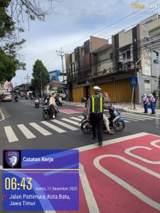 Kota Batu – Personel Satuan Lalu Lintas (Satlantas) Polres Batu melaksanakan kegiatan pengaturan arus lalu lintas di depan MAN Kota Batu pada jam-jam sibuk kedatangan dan kepulangan pelajar. Kegiatan ini merupakan salah satu bentuk pelayanan prima kepolisian guna menciptakan situasi lalu lintas yang aman, tertib, dan lancar di kawasan pendidikan.