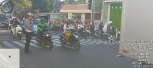 Satlantas Polres Batu Lakukan Pengaturan Lalu Lintas di Depan SMTs Hasyim Asy’ari Demi Keselamatan Pelajar