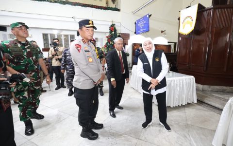 SURABAYA – Kapolda Jawa Timur Irjen Pol Drs. Nanang Avianto, M.Si. bersama Forum Koordinasi Pimpinan Daerah (Forkopimda) Jawa Timur meninjau langsung sejumlah gereja di Surabaya jelang perayaan Natal,Selasa (24/12/2025). Kunjungan Kapolda Jatim ini untuk memastikan kesiapan pelayanan pengamanan ibadah Natal 2025 di sejumlah gereja. Gereja yang dikunjungi antara lain Gereja Katolik Paroki (GKP) Santa Maria Tak Bercela, GKJW Jemaat Surabaya, serta GPIB Immanuel. Kunjungan tersebut merupakan bagian dari pelaksanaan Operasi Lilin Semeru 2025 guna memberikan rasa aman dan nyaman bagi umat Kristiani yang menjalankan ibadah. Dalam pengecekan tersebut, Kapolda Jatim selain memastikan kesiapan personel pelayanan juga sistem pelayanan terpadu dan…