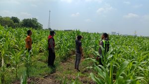Kanit Binmas Polsek Krembung Aiptu Adin menjelaskan bahwa kegiatan pengecekan dilakukan secara berkala untuk memastikan tanaman jagung tumbuh optimal.