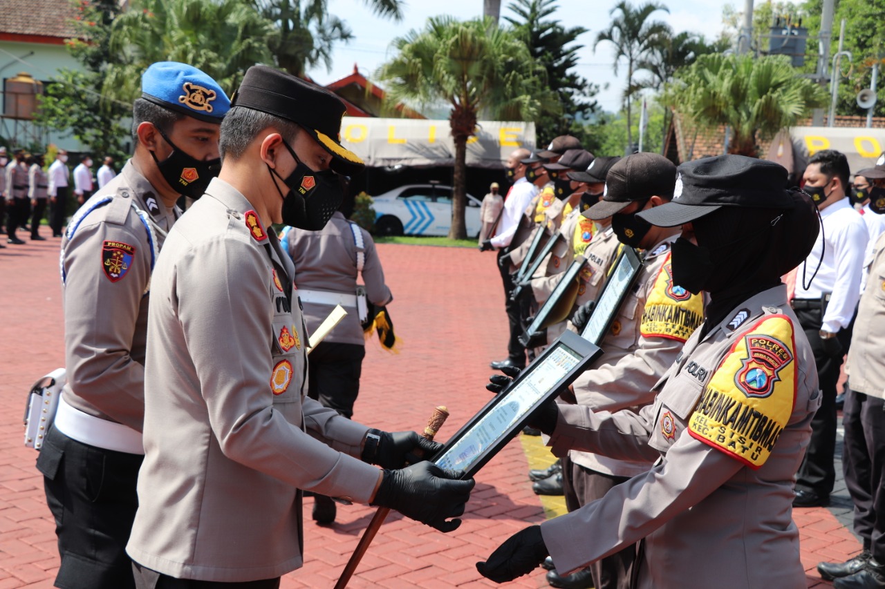 Polres Batu – Kapolres Batu AKBP I Nyoman Yogi Hermawan memberikan penghargaan kepada Bhabinkamtibmas Kelurahan Sisir dalam acara Upacara Kenaikan Pangkat ASN dan Pemberian Penghargaan Anggota Berprestasi di Polres Batu, Senin (22/11/2021). Bhabinkamtibmas Kelurahan Sisir memperoleh penghargaan dari Kapolres merupakan Polwan Polres Batu yang berdinas di Polsek Batu. Yogi menyampaikan ucapan selamat kepada para Bhabinkamtibmas yang mendapatkan penghargaan. “Saya ucapkan selamat kepada rekan-rekan Bhabinkamtibmas yang mendapatkan penghargaan,” ujar Yogi. Ia juga mengatakan bahwa Bhabinkamtibmas telah berkontribusi positif dalam membantu pencairan bantuan tunai PKL dan warung. “Rekan-rekan Bhabinkamtibmas yang mana telah berkontribusi positif dalam membantu pencairan Bantuan Tunai Pedagang Kaki Lima…