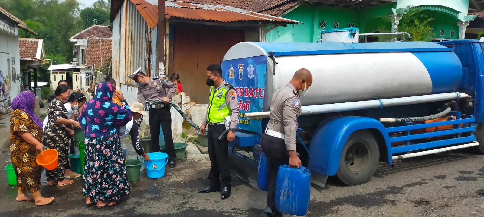 Polres Batu Kambali Distribusikan Air Bersih ke Desa Terdampak Banjir Bandang