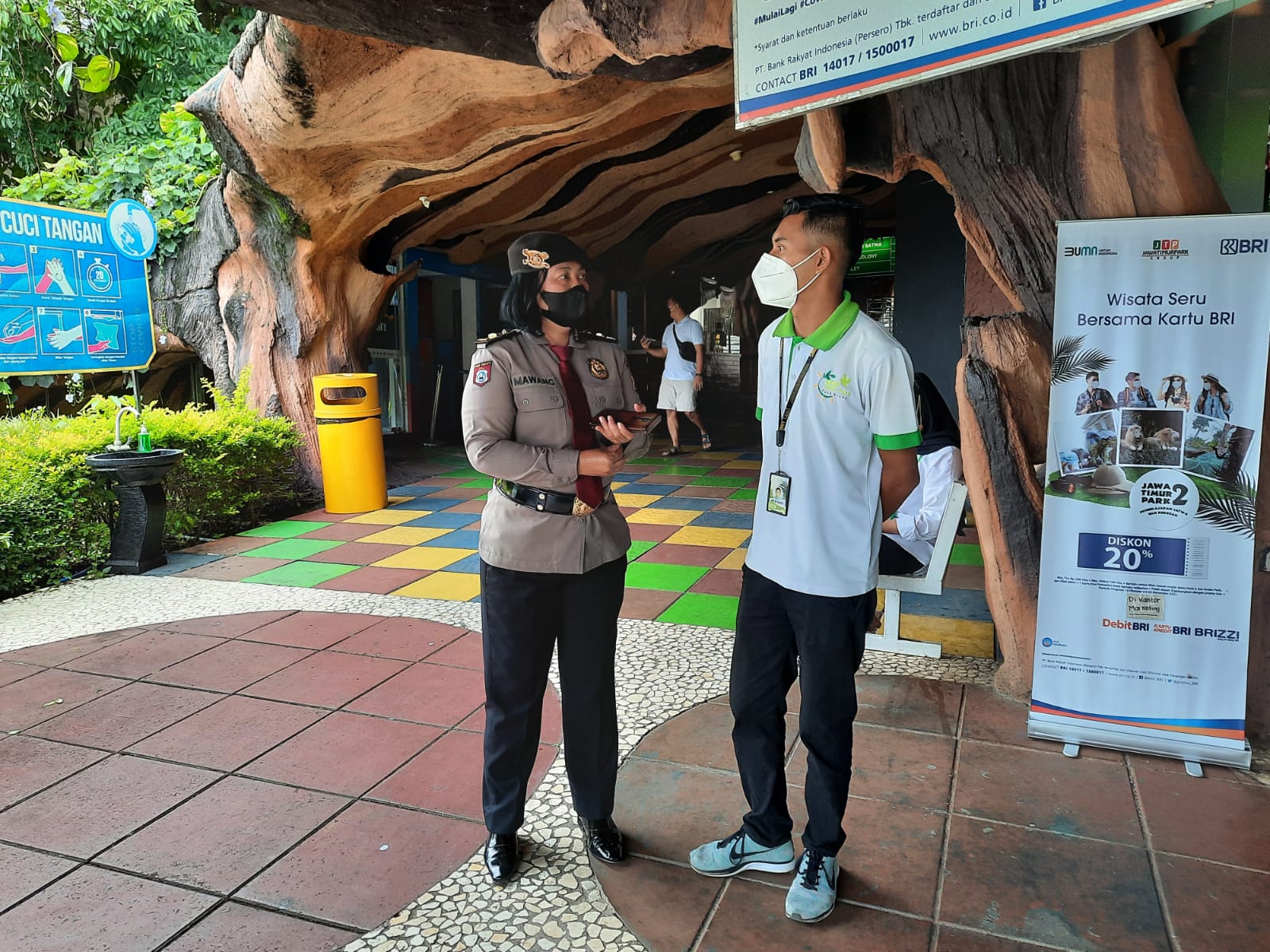 Polres Batu – Kanit Polisi Pariwisata (Polpar) Sabhara Polres Batu Ipda Mawang bersama anggota melaksanakan kegiatan rutin, patroli Wisata dan Perhotelan di Jatim Park 2 (JTP 2) Kota Batu, Sabtu (13/11/2021). Saat mengunjungi Wisata JTP 2 dan Hotel Pohon Inn, Mawang memberikan imbauan kamtibmas, sosialisasi Prokes Covid-19 dan aplikasi Peduli Lindungi kepada marketing. “Ini rutin dilaksanakan. Bertujuan menciptakan situasi kamtibmas aman tertib dengan tetap menerapkan Prokes Covid-19,” ujar Mawang. Ia mengungkapkan, kegiatan ini merupakan Kegiatan Rutin Yang Ditingkatkan (KRYD) serta menekan angka penyebaran Covid-19 di Kota Wisata Batu. “Kami hadir untuk memberikan rasa aman kepada wisatawan yang berkunjung di Kota…